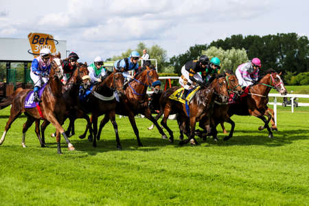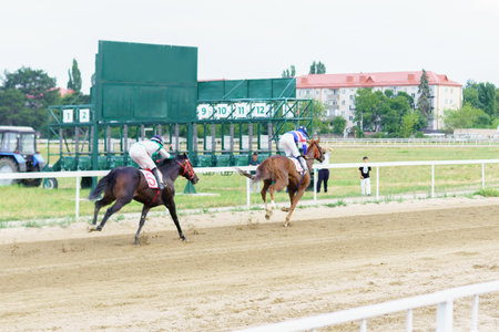 Russia, Novosibirsk, September 5, 2015: Horse racing at the racetrack. City competitions.