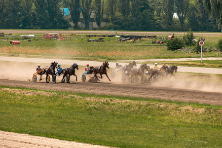 Testing of horses of trotting breeds - July 02.2023: Kyiv, Ukraine. Horse racing at the hippodrome