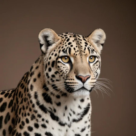 Leopard in front of a brown background, looking at the camera