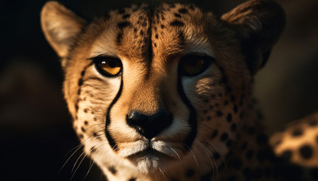 Majestic cheetah, wild beauty, staring, watching, nature captivating wilderness generated by artificial intelligence