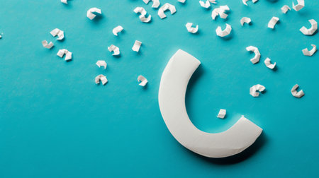 Colorful paper tapes forming abstract shape on blue background