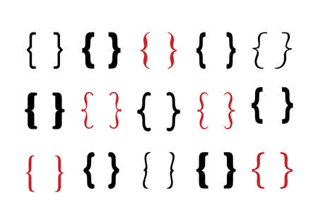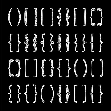 large set of curly braces. curly braces are hand drawn and graphic.