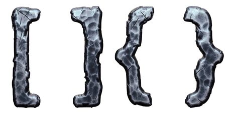 Set of symbols square bracket and right brace made of forged metal isolated on white background. 3d rendering