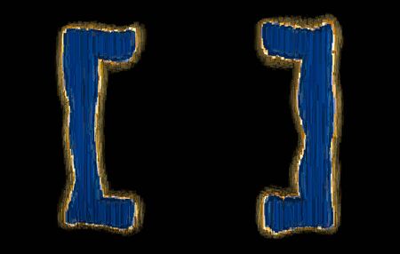 Set of symbols square brackets made of industrial metal blue color. Isolated on black background. 3d rendering