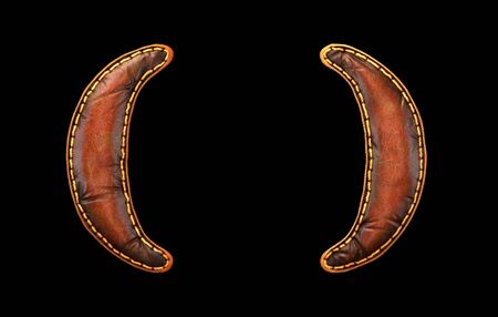 Set of symbols left and right parentheses made of leather. 3D render font with skin texture isolated on black background. 3d rendering