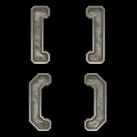 Set of symbols left and right square bracket, left and right parentheses made of industrial metal on black background 3d rendering