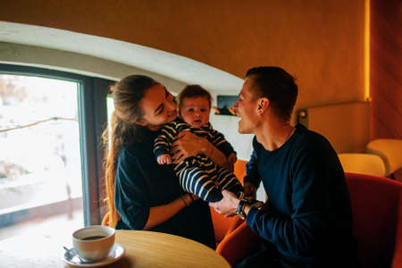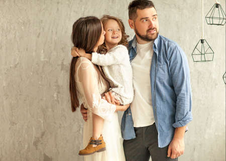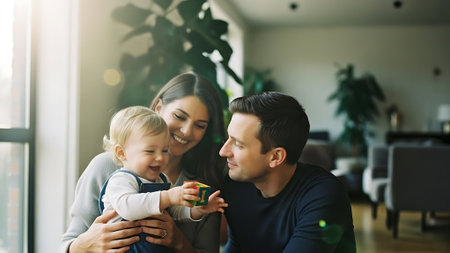 Happy parents spending time with their cute child at home