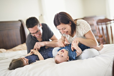 Family playing on bed in the bedroom