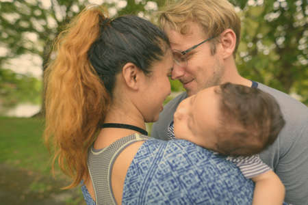 Multi-ethnic young family bonding together at the park