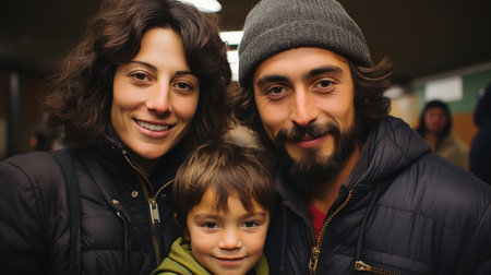 A happy family bonding closely, enjoying each others company in a cozy space.