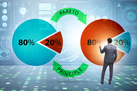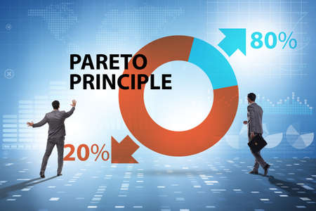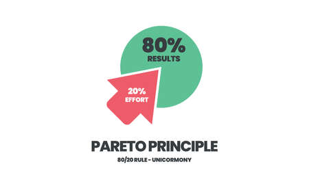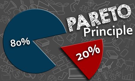 The Pareto principle concept is in illustration of 80 and 20 percent work priority analysis. The pie chart is a diagram of eighty results and twenty effort in the idea less is more or optimization.