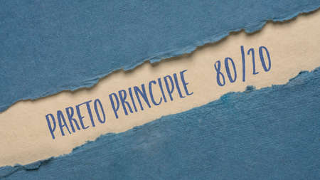 Pareto 80-20 principle banner - handwriting on a handmade rag paper, business, productivity and priorities concept