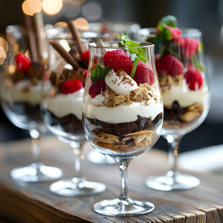 Festive layered trifles with vibrant fruit and cream for holiday celebrations