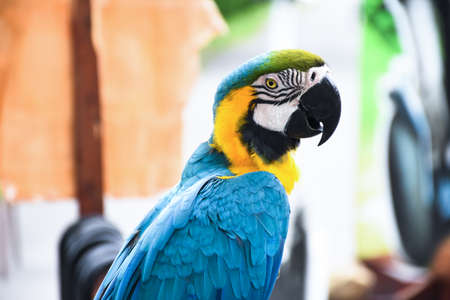 Colourful parrot bird sitting on the perch