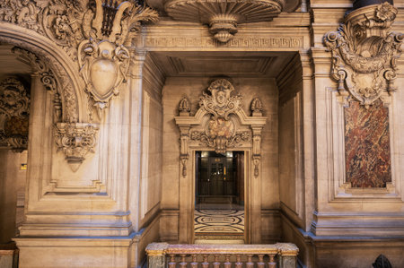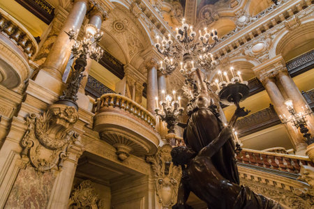 Paris, France - Sept 05, 2019: architecture details of the Opera Garnier in Paris.