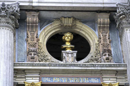 Detail of the facade of the National Academy of Music in Paris.