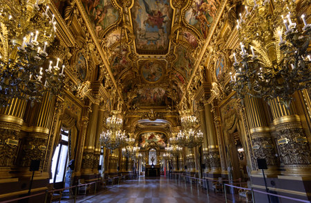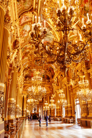 PARIS, FRANCE, MAY 11, 2018: Grand Foyer of the Palais Garnier opera in Paris. The theater is also often referred to as the Opera Garnier in Paris, France