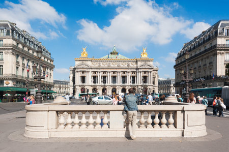 Paris, France - Sept 3, 2014: Man looking at the Opera Garnier on a sunny day