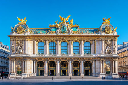 Stunning panoramic view of the historic palais garnier opera house against a clear blue sky