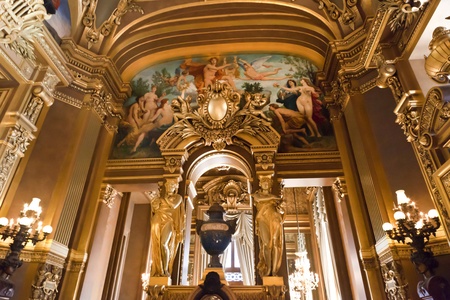 The interior entrance of the Palais Garnier, an opera house in Paris France