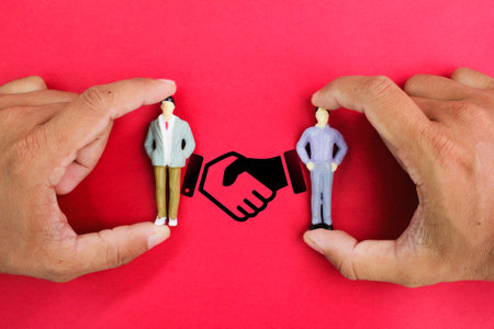 two business people with a handshake in the middle. the concept of consent. the concept is agreed upon by both parties