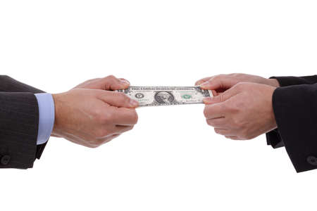 Close up of Hand of Businessmen Giving Dollar to another Person