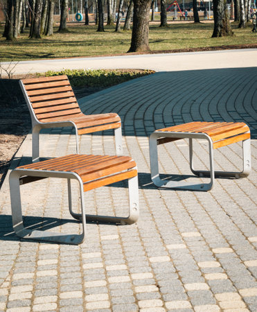 Outdoor benches in the Liget park in Szeged