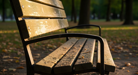 Bench in the park in autumn Selective focus on bench. garden on background Generative AI