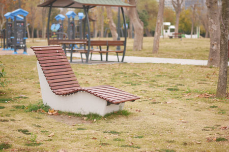 Relaxing bench by the park grass