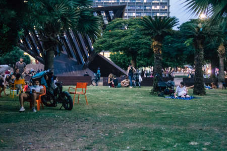 Tel Aviv Israel October 27, 2020 View of unidentified Israeli people sitting in the streets of Tel Aviv during lockdown and Coronavirus outbreak to enforce containment of the population in Israel