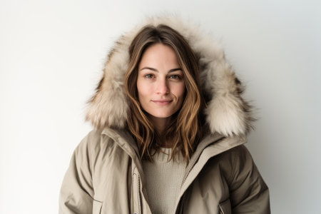 Portrait of a beautiful young woman in a winter jacket on a white background