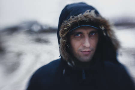 Portrait of a man winter jacket in winter