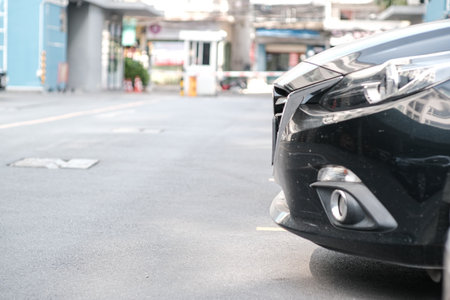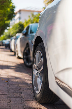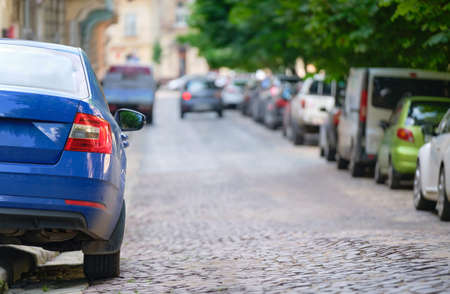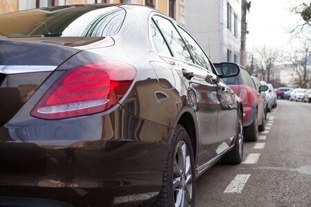 Close up of a car parked illegally against traffic rules on pedestrian city street side