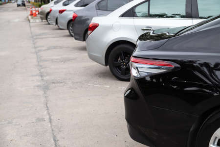 Car parking in asphalt parking lot Outdoor parking lot with fresh ozone and green environment of transportation concept