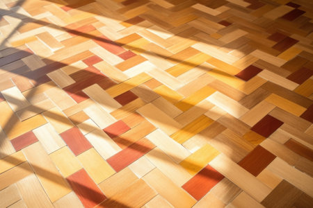 high-angle view of multi-shade parquet flooring in the sun, created with generative ai