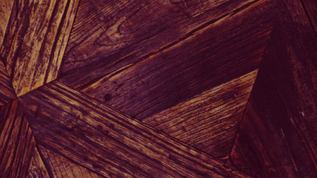 Rustic wooden planks in cinematic pattern showcasing rich texture and color variations