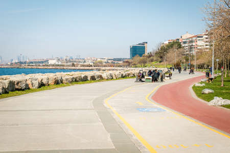 Istanbul, Turkey - March 29, 2016: People are spending their leasure time on the Kadikoy coastine in Istanbul, Turkey