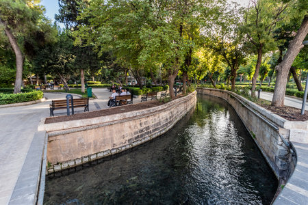 SANLIURFA, TURKEY - SEPTEMBER 22, 2022: Water channel in Golbasi Park in Sanliurfa, Turkey