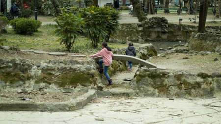 Tel Aviv Israel January 10, 2020 View of unidentified Israeli kid having fun on the beach of Tel Aviv during a sunny day in winter