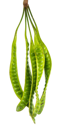 The fresh Parkia on white background which is tropical stinking edible beans, Thailand