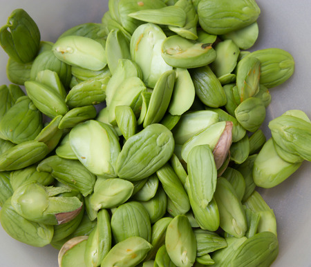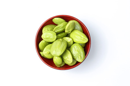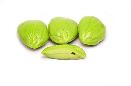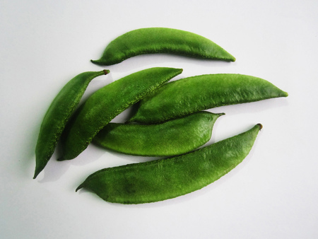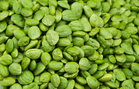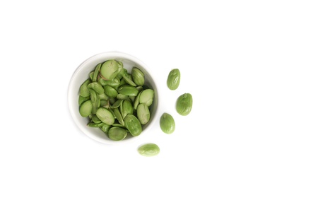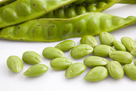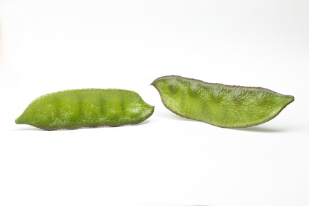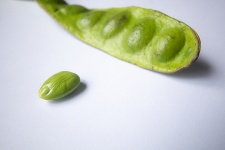 close up of Green bitter beans on white