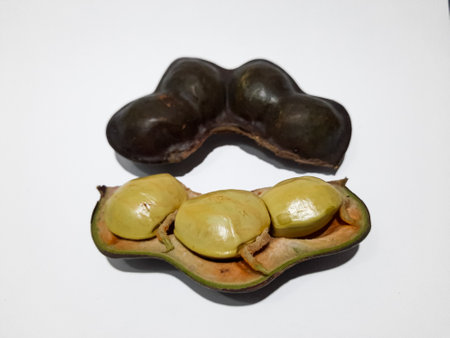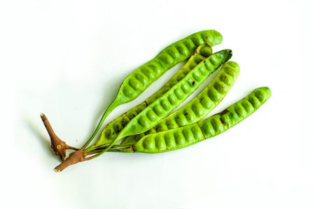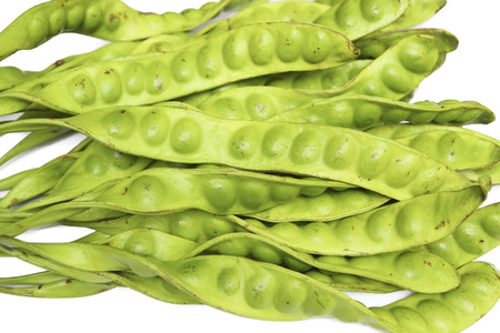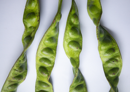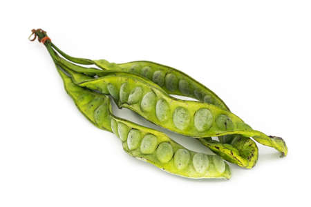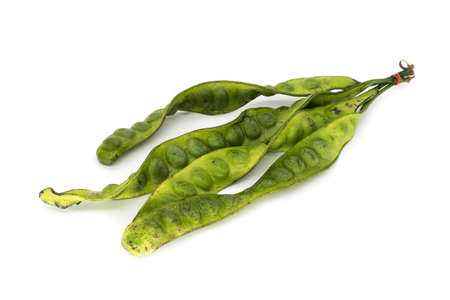 tropical stinking edible beans on white background Parkia Speciosa