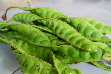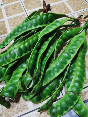 Top view of Pete or Petai beans, popularly known as stink bean.