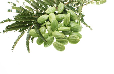 Fresh stink bean against white background