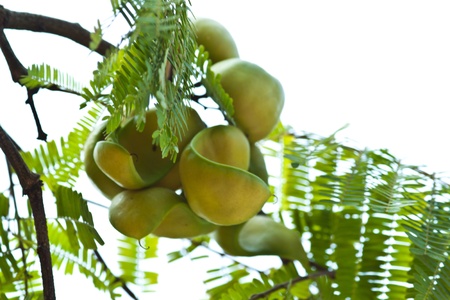 Close view of green white leadtree fruit