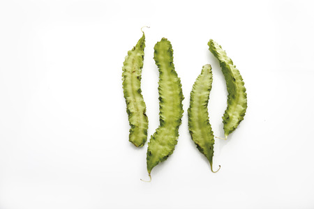 Bitter gourd or bitter melon on white plate.