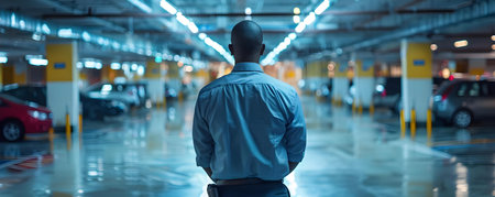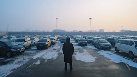 A man in a city parking lot. Created by Generative AI Tools