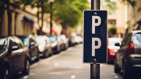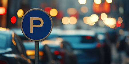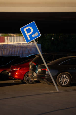 Urban Parking Environment Featuring Blue Sign