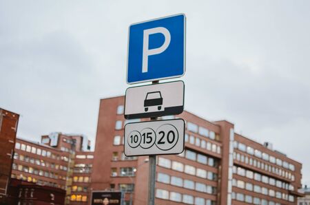 Parking sign on the background of traffic signs. The concept of parking