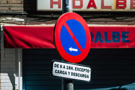 Seville Spain August 21, 2021 Street sign or road sign, erected at the side of or above roads to provide information to road user in the downtown area of Seville